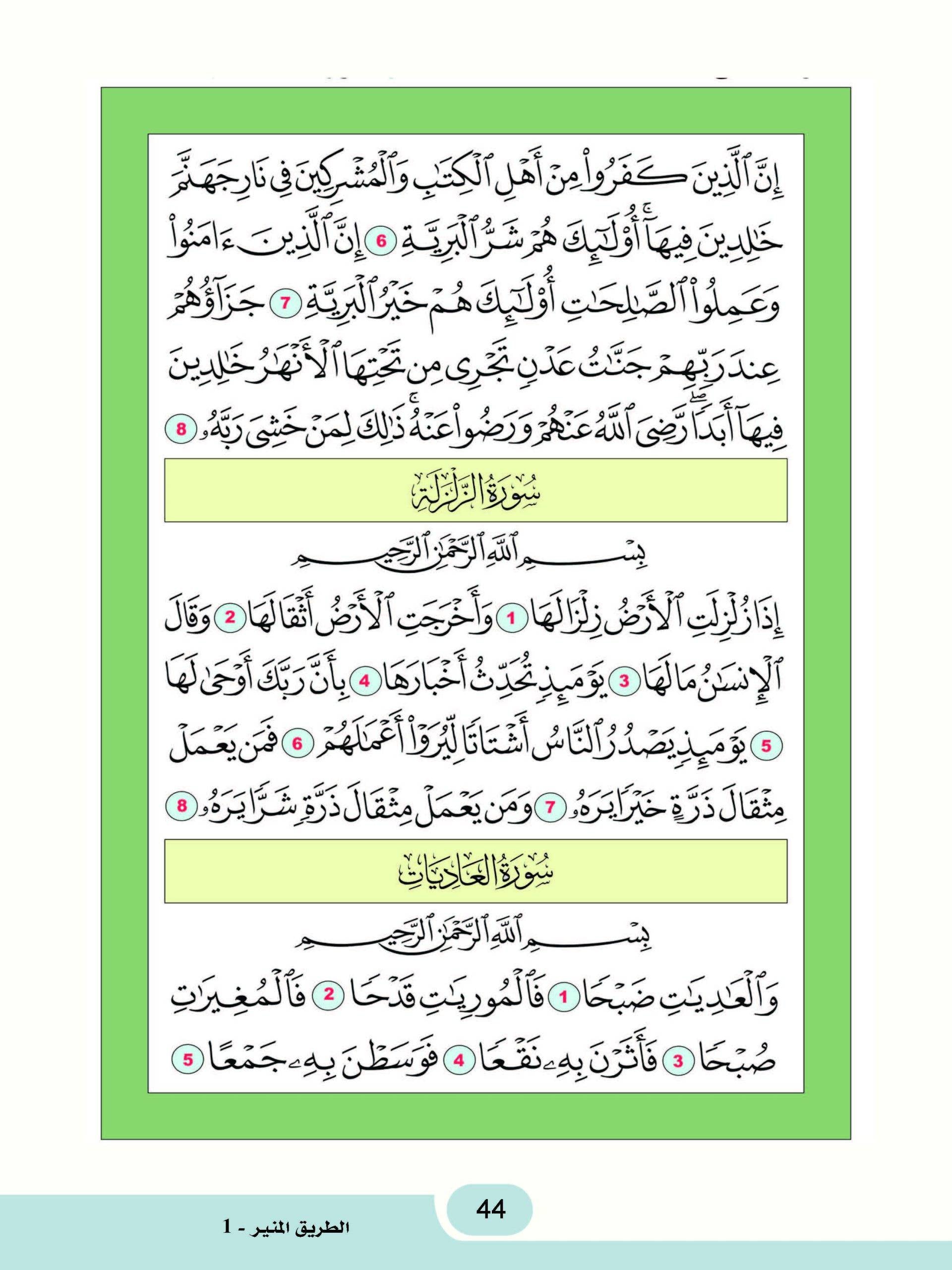 القصص القرانية: تمكين التلاميذ من الاطلاع على حياة انبياء الله ورسله وعلاقاتهم باقوامهم, وجعل التلاميذ يستخلصون العبر من ذلك ويتعرفون على مدى انفتاح الاسلام على كل الاديان السماوية