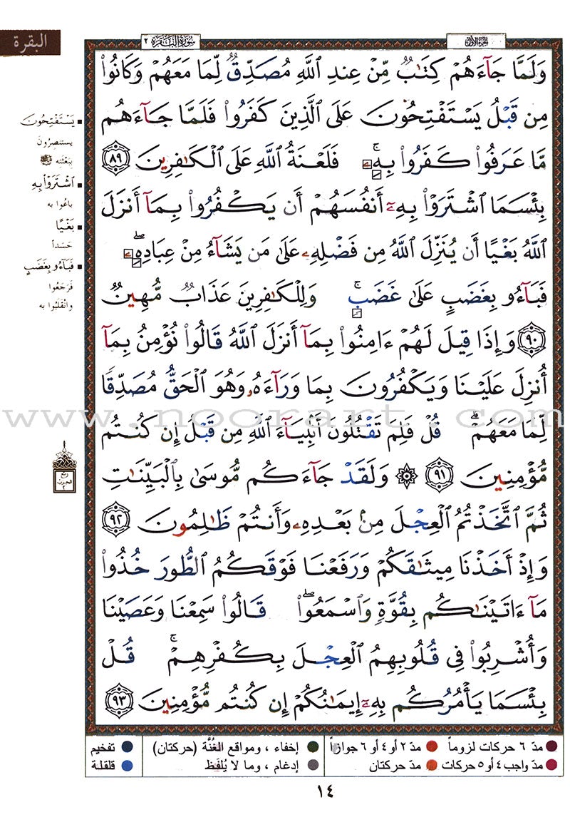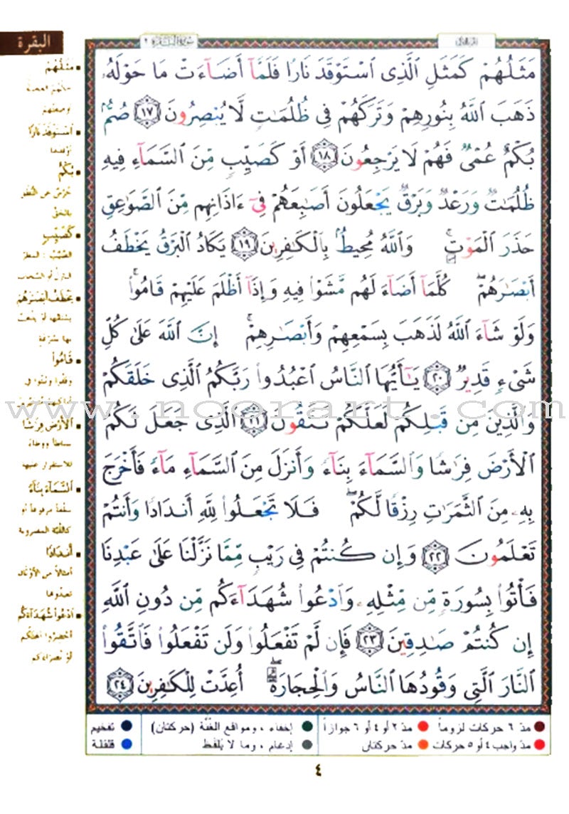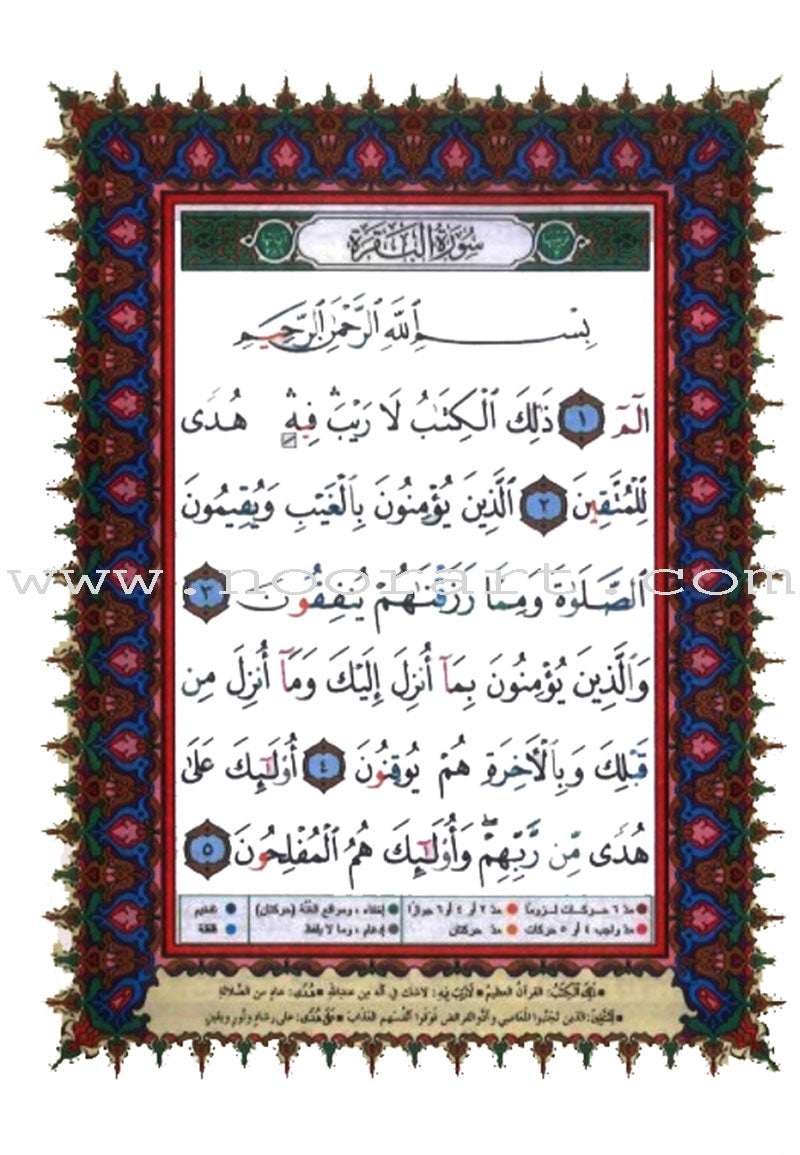 هذه هي سورة البقرة من المصحف الملوَّن بالتجويد، وتأتي في كتاب واحد منفصل. ونظرًا لما لقراءة هذه السورة من بركات خاصة، فإن حمل جزء البقرة فقط يكون أسهل بكثير من حمل المصحف الملوّن كاملًا.
