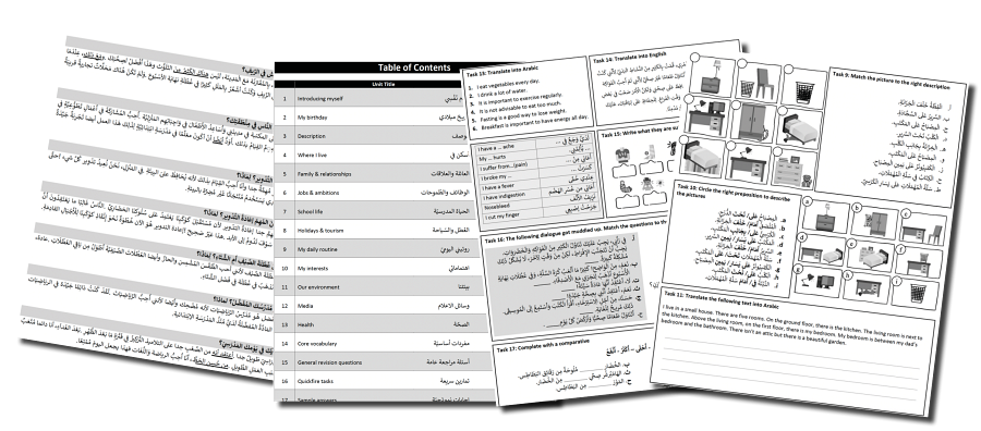 In this workbook, there are many revision tasks. Its objective is to consolidate prior knowledge of Arabic as a foreign language. If you like sentence builders and quickfire questions, you will find plenty of tasks for the units that are typically covered in the curriculum.