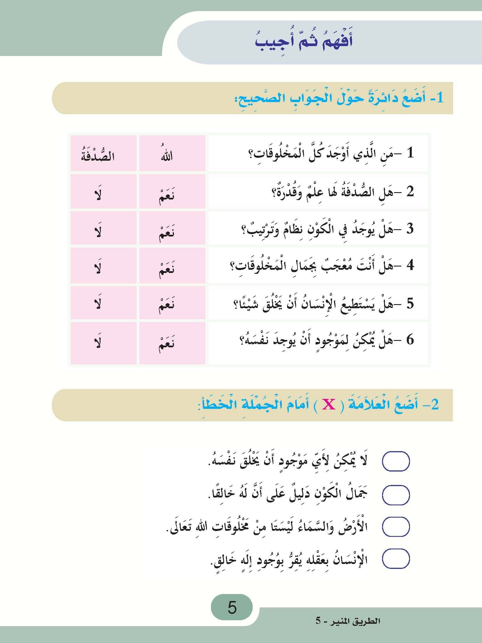 العقيدة: التزام منهج القرآن الكريم والسنة الشريفة في طرح مفاهيم العقيدة، والهدف من ذلك تحصين التلاميذ من الافكار المتأثرة بثقافات متعارضة مع حقائق الاسلام