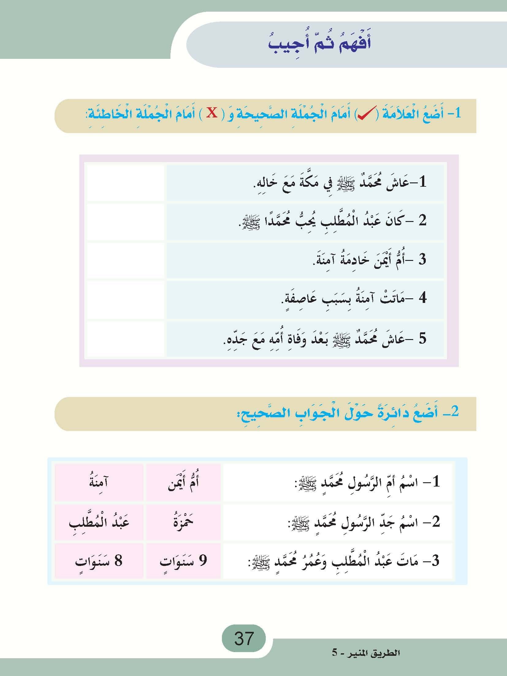 السيرة النبوية:تمكين التلاميذ من التعرف على مراحل حياة الرسول صلى الله عليه وسلم واخلاقه الفاضلة ودعوته الى الاسلام بالحسنى