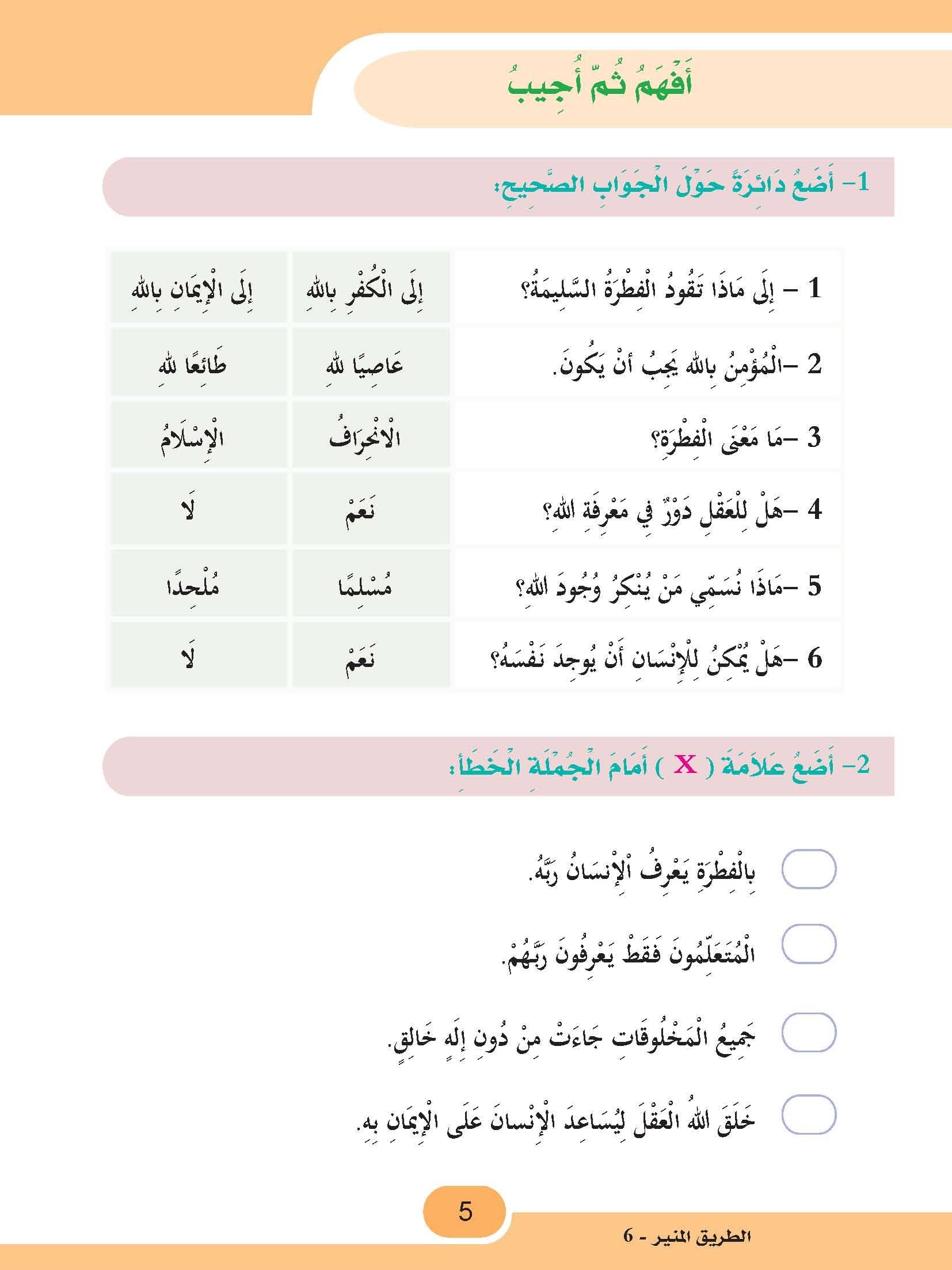 العقيدة: التزام منهج القرآن الكريم والسنة الشريفة في طرح مفاهيم العقيدة، والهدف من ذلك تحصين التلاميذ من الافكار المتأثرة بثقافات متعارضة مع حقائق الاسلام